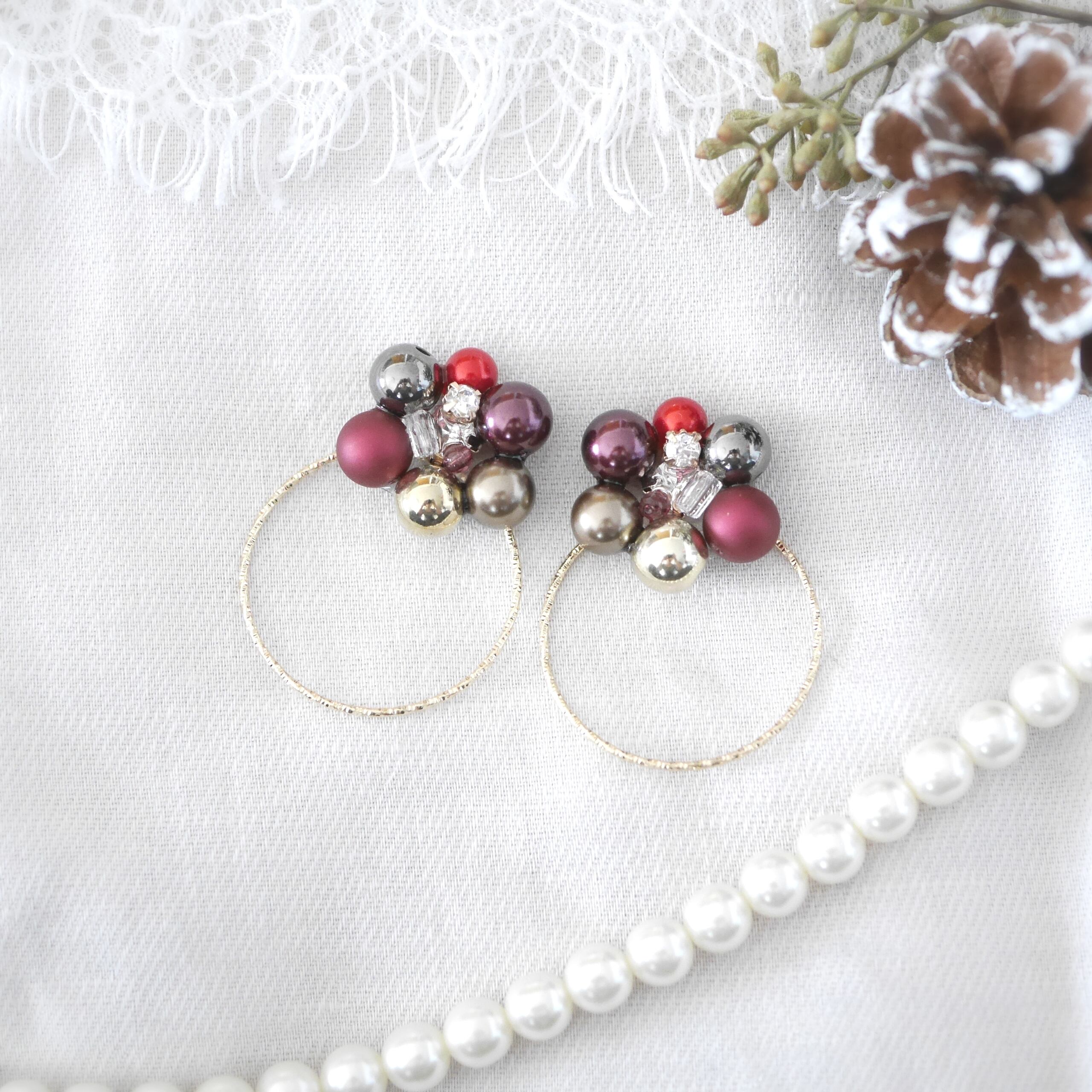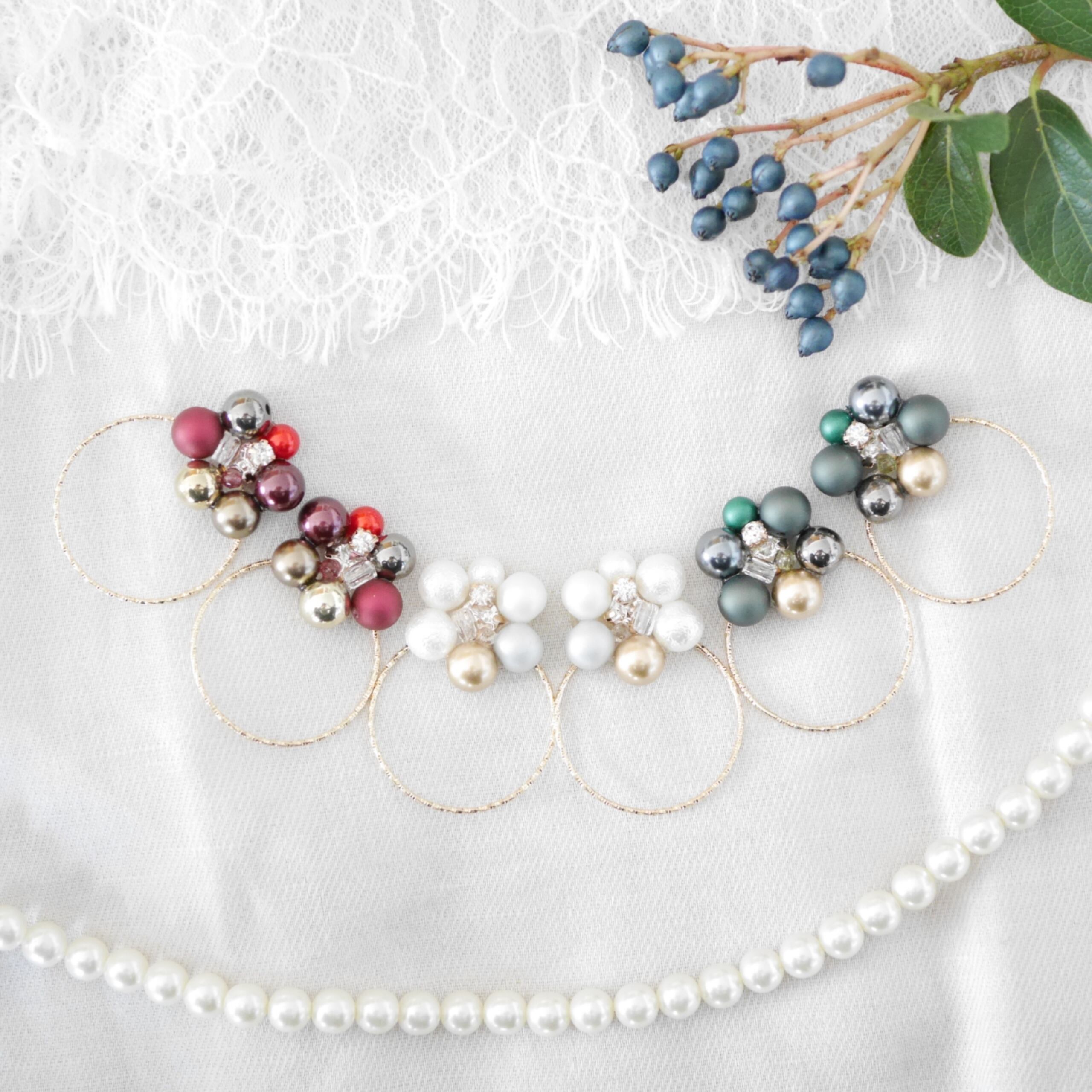 パールとビジューの配置×色合わせに命をかけております。