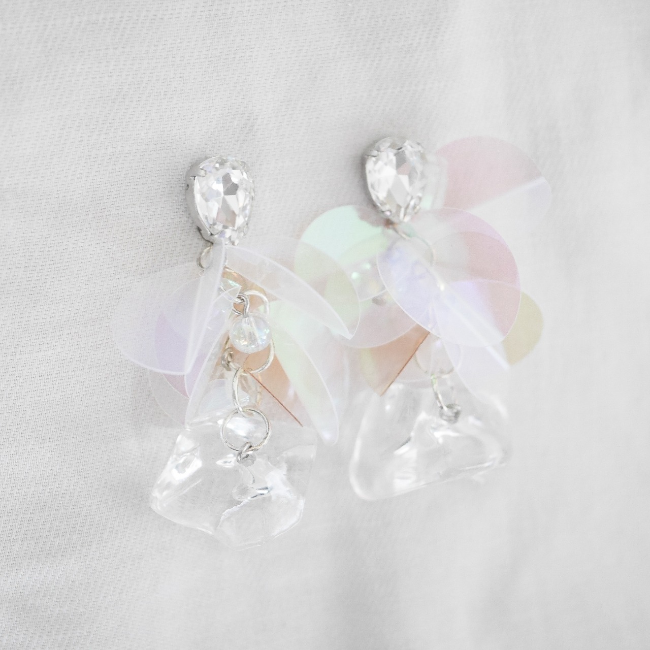 アンダーには、氷のような大粒クリアビーズを合わせ、