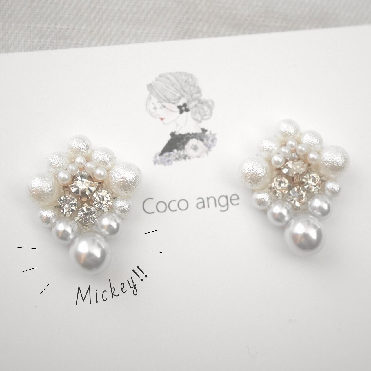 Secret Mickey…♡ ピアス❈イヤリング201 COCO ANGE.結婚式ウェディングウエディングブライダルパーティー花嫁白ホワイトパールビジューストーンキラキラスクエア四角揺れないねずみネズミランドパーク大人可愛い上品 | COCO ANGE.
