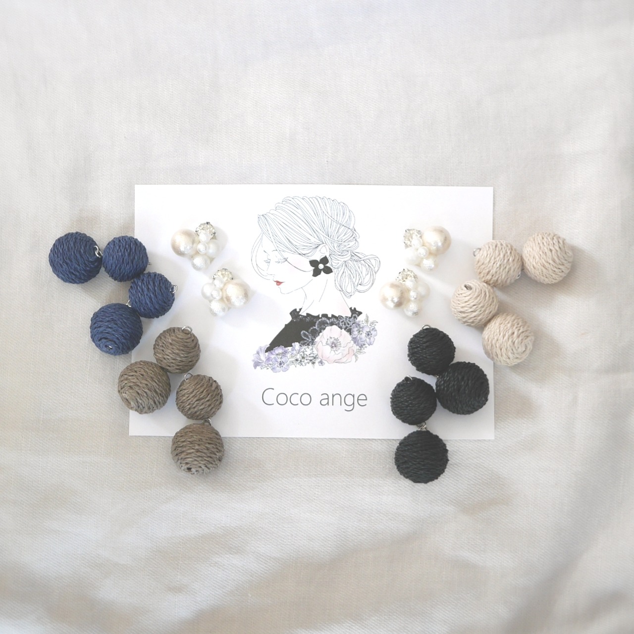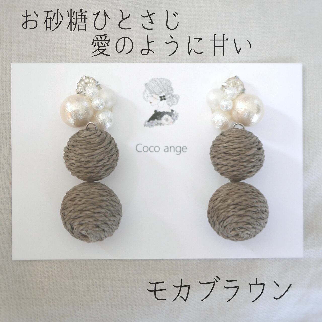 モカブラウンボンボン «2way»ピアス❈イヤリング208 COCO ANGE.大振り大ぶりカジュア茶色コーヒーコットンパールボール丸お洒落おすすめ大人可愛いかわいい揺れる2連ロングビッグパーティー個性派秋冬トレンド | COCO ANGE.