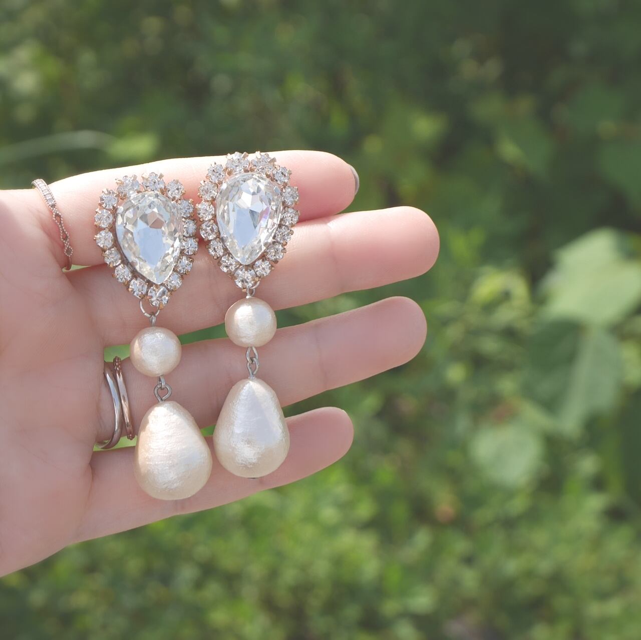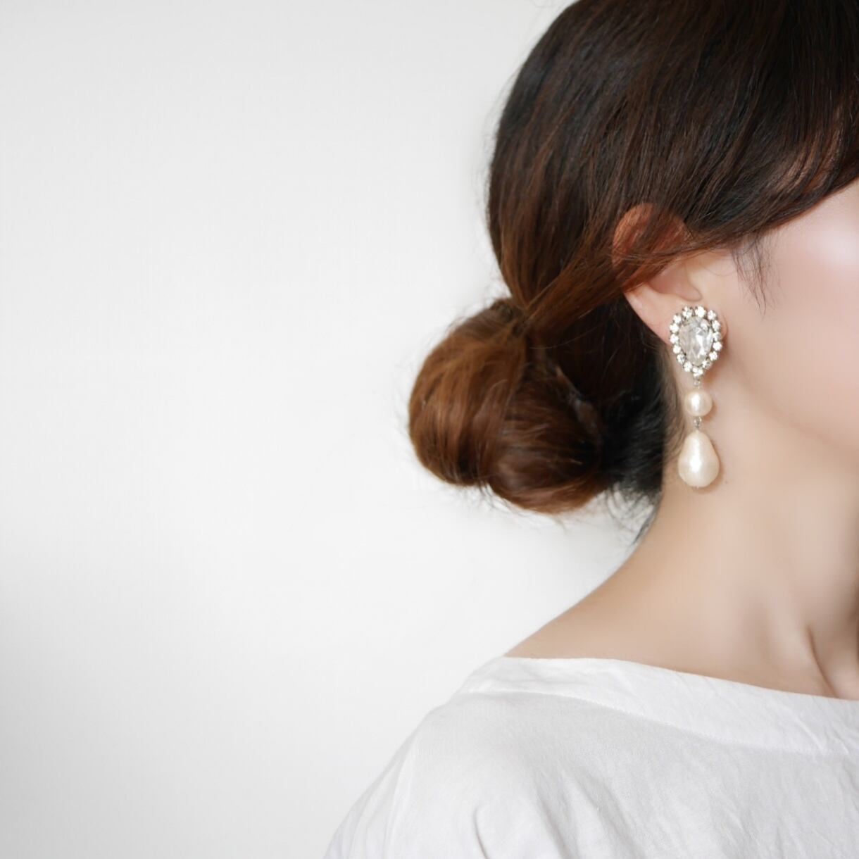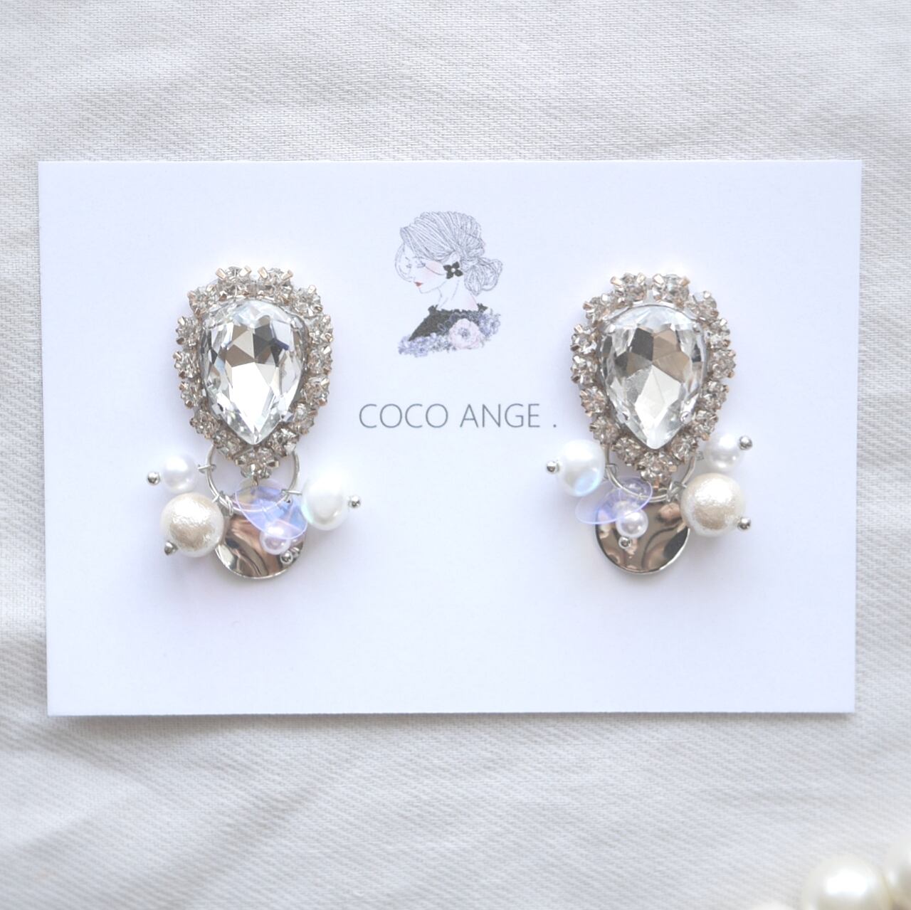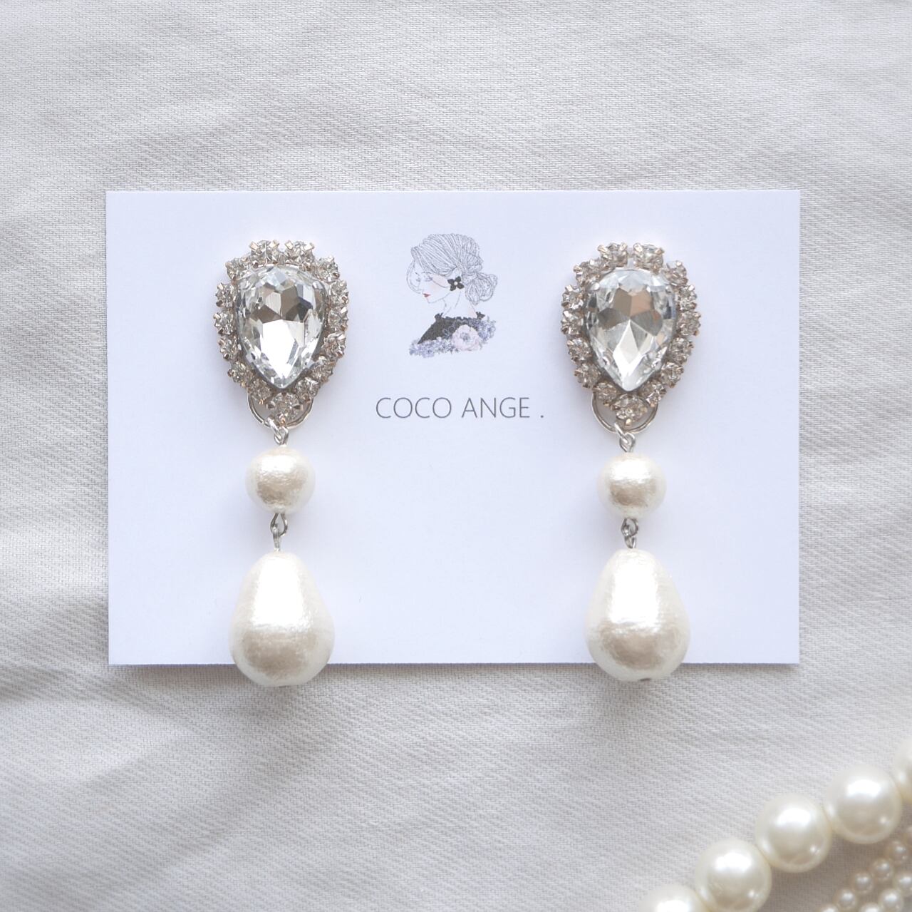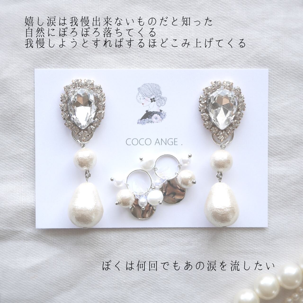 ありがとう。 〜涙の雫〜 «3way»ピアス❈イヤリング215 COCO ANGE.結婚式ウェディングウエディングブライダルパーティーオケージョンコットンパールキラキラビジュー大振り大ぶり豪華やか選べるドロップストーン | COCO ANGE.